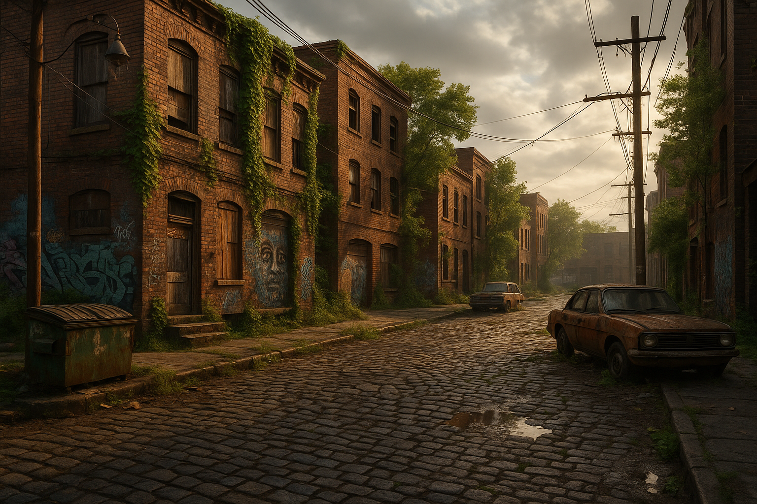 As the sun rises over the concrete jungle, casting long shadows across weathered bricks and graffiti-adorned walls, a unique beauty emerges